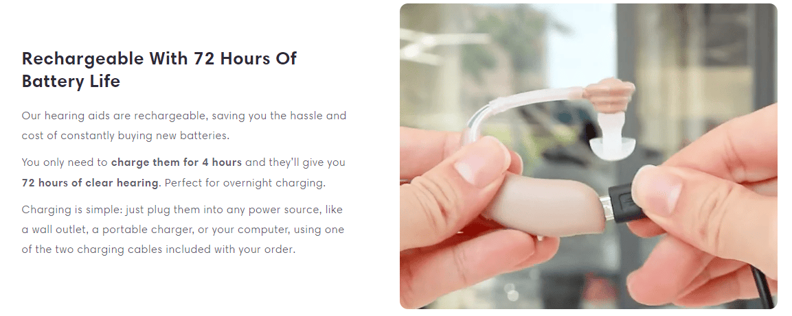 Effortless Hearing: These hearing aids feature easy to use controls and 72 hour rechargeable battery life, making clear hearing effortless.